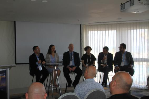主題報告后由以色列Mekorot工程技術(shù)和戰(zhàn)略規(guī)劃副總裁Yossi Yaacoby先生主持了主題為“通過創(chuàng)新增強(qiáng)韌性”的小組討論,來自以色列水務(wù)局安全應(yīng)急和網(wǎng)絡(luò)高級部門經(jīng)理Danny Lacker先生、以色列創(chuàng)新局初創(chuàng)部門氣候與健康高級總監(jiān)Hagit Schwimmer女士、法國國家水工業(yè)與企業(yè)聯(lián)盟(UIE)董事會蘇伊士企業(yè)風(fēng)險投資總監(jiān)Jean-Luc Venture先生、巴西國家水務(wù)和衛(wèi)生局水務(wù)和社會經(jīng)濟(jì)研究主管Felip Tavares先生、美國ICI基金聯(lián)合創(chuàng)始董事總經(jīng)理Gili Elkin女士參加了討論。