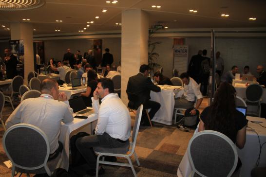 27日下午進(jìn)行了企業(yè)B2B一對一洽談環(huán)節(jié),根據(jù)會議注冊時參會嘉賓選擇確定的洽談名單逐一進(jìn)行。參加B2B交流的以色列企業(yè)有以色列最大的水務(wù)公司Mekorot、海水淡化技術(shù)工程公司IDE、空氣制水技術(shù)公司W(wǎng)atergen、智慧水務(wù)公司KANDO、基于人造衛(wèi)星的管道漏損探測公司ASTERRA、管網(wǎng)漏損檢測及評估公司Aquarius Spectrum、水質(zhì)安全實(shí)時檢測公司CyWat公司、過濾技術(shù)公司Amiad、新型生物處理填料公司AqWise、無線自動抄表數(shù)據(jù)網(wǎng)絡(luò)公司Arad、紫外線消毒技術(shù)公司Atlantium、高質(zhì)量液壓控制閥公司BERMAD、強(qiáng)化生物處理SBP膠囊公司BioCastle、免開挖自動漏損修復(fù)公司Curapipe等。