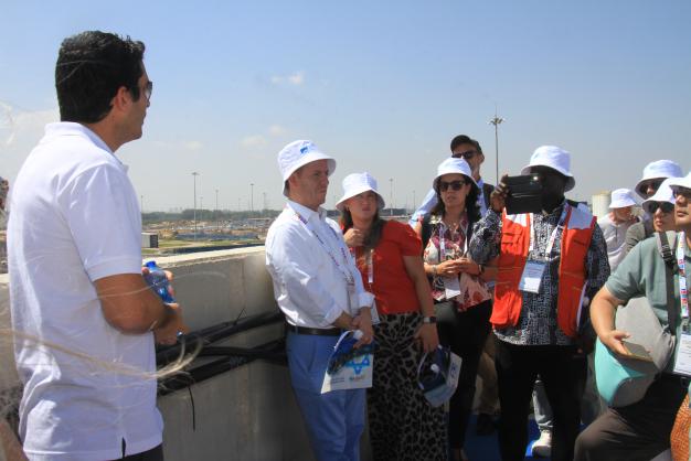 6月28日會議組織會議代表前往以色列最大的污水處理廠(Shafdan),首先在污水廠空地處系統(tǒng)講解了應(yīng)急管理準(zhǔn)備事項(xiàng),并示范了水危機(jī)管理的實(shí)操應(yīng)對措施和裝備。