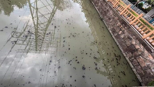 而在松江區(qū)閔塔路1751弄,小區(qū)居民也被時常反臭的河道困擾著。“東西流向的流域狀況良好,就是北側(cè)延伸出來的這段,經(jīng)常黑臭,還在小區(qū)里。”在12345市民服務熱線,一名居民如是描述。8月9日,記者前往恬潤新苑,看到了這條總長840米的恬潤河。正如市民所說,河道整體造型呈現(xiàn)“丁”字形,東西兩側(cè)河水分別匯入了小區(qū)外的油墩河和新村公路旁邊的河道,向北側(cè)分叉出去約為100米的河道,綿延流入小區(qū)內(nèi),成了斷頭河。記者到時,黑臭現(xiàn)象并不明顯,只是看到水面上漂浮的綠色植物較多。不過,一位阿姨聽聞記者來調(diào)研,忍不住吐槽說:“最近幾天下雨多,水面上漲了,就不怎么臭了,前陣子降雨少,特別臭,在家打開窗戶都能聞到味兒。”