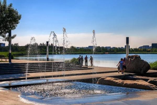 清新的夏日傍晚,三五成群的孩子在親水平臺上嬉戲,微型噴泉、景觀小品、夜景燈光、塑膠跑道,讓周邊居民和企業員工盡情感受人與自然的和諧。“我是旁邊金融公司的員工,喜歡跑馬拉松,每天我都會圍著景觀湖跑一圈,不僅可以鍛煉身體,還有許多風景可以欣賞?!笔忻袂胤几嬖V記者。