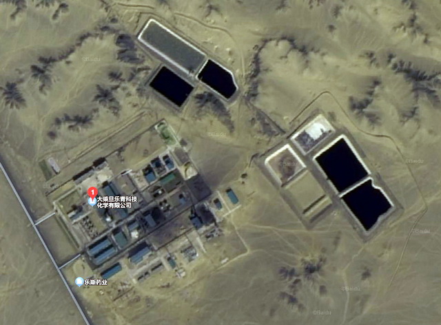 從衛(wèi)星圖片上可以清晰看到,在和信科技廠區(qū)的南側(cè)和西南側(cè),有多處大小不等的黑色或褐色斑塊,總面積超過該廠區(qū)面積。直線距離約20公里外的樂青科技生產(chǎn)廠區(qū)的東北側(cè),也有8處大小不等的黑色或褐色斑塊,總面積與該廠區(qū)面積相當(dāng)。
