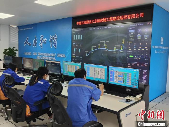 輕點(diǎn)鼠標(biāo),污水傳輸設(shè)備工況、各種檢測(cè)數(shù)據(jù)、調(diào)度計(jì)劃等數(shù)據(jù)全部顯示在電子大屏。9月25日,在武漢大東湖深隧二郎廟預(yù)處理站,3名工作人員在中控室通過(guò)信息化管理平臺(tái),掌控著每天60余萬(wàn)噸污水“乘”深隧“專列”快速送入至遠(yuǎn)端北湖污水處理廠。