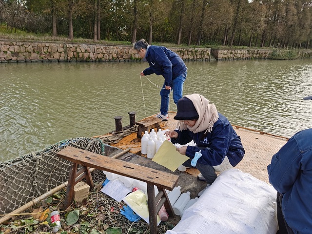 圖為嘉興生態(tài)環(huán)境局的局長施曉松正在調(diào)研水環(huán)境質(zhì)量