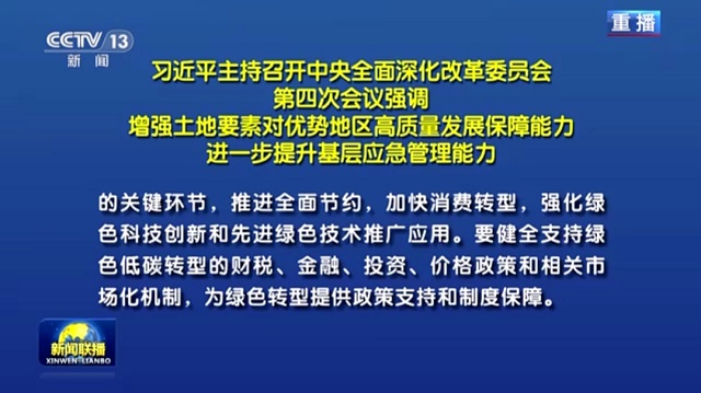 2月19日下午,中共中央總書記、國家主席、中央軍委主席、中央全面深化改革委員會主任習近平主持召開中央全面深化改革委員會第四次會議,審議通過了《關于促進經濟社會發(fā)展全面綠色轉型的意見》等重要文件。