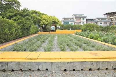 有些奇怪的是,這塊人工濕地看不到水,植物之下就是砂石。“這是潛流濕地,水都在砂石下面”,廣州市污水治理工程管理辦公室有關負責人告訴記者:“潛流濕地的優點是不會滋生蚊蟲,也不會發出異味,最大限度減少對周邊村民的影響。”實際上,污水并不是靠植物來處理,而是靠砂石表面生物膜上的微生物來處理,植物的根系在一定程度上能給微生物供氧,加快污染物的分解。