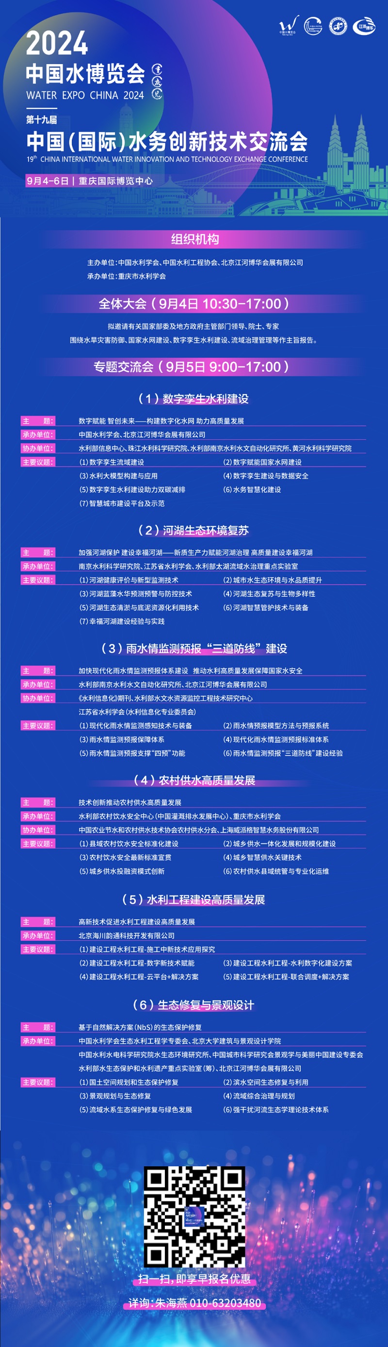六大主題分會(huì)聚焦水利行業(yè)熱點(diǎn),盡在9月4-6日,第十九屆中國(國際)水務(wù)創(chuàng)新技術(shù)交流會(huì)