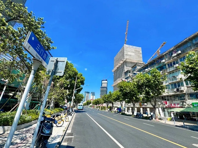 上午十點,記者來到國和路三門路看到,嶄新的柏油路上車流穿梭,百米長的路段上窨井蓋整齊排布。馬路兩旁綠化鋪設(shè)井然有序,街區(qū)整體面貌煥然一新。