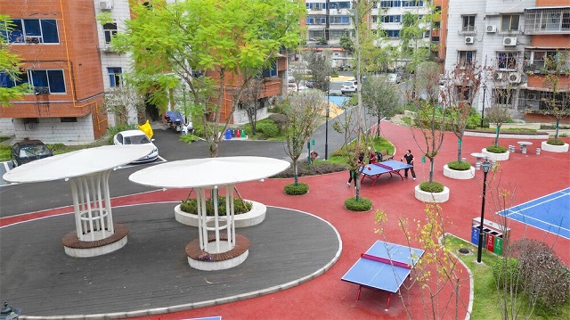 “按照海綿城市理念,在地磚下鋪設(shè)管溝,自然引流、匯集地面的雨水,并挖掘兩處淺凹地蓄水,種植喜水植物,就形成了雨水花園。”趙翔說,在臨街景觀帶增設(shè)健身器材、兒童娛樂設(shè)施等公共設(shè)施,實現(xiàn)海綿與娛樂、自然與功能有機融合,以開放包容的形式融合了小區(qū)與社區(qū)的關(guān)系。