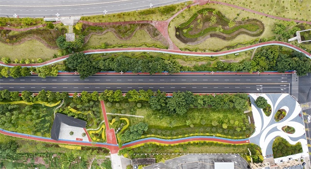 更為重要的是,海綿設(shè)施的植入,讓這條路實現(xiàn)了“大雨不積水、小雨不濕鞋”。人行道三層結(jié)構(gòu)均使用透水材料,可上演“瞬間雨水消失術(shù)”;車行道兩旁分布的“離線式生物滯留帶”,能夠?qū)?0%以上的路面雨水收集、過濾、存儲,實現(xiàn)雨水快速收集和綠化灌溉“一舉兩得”。