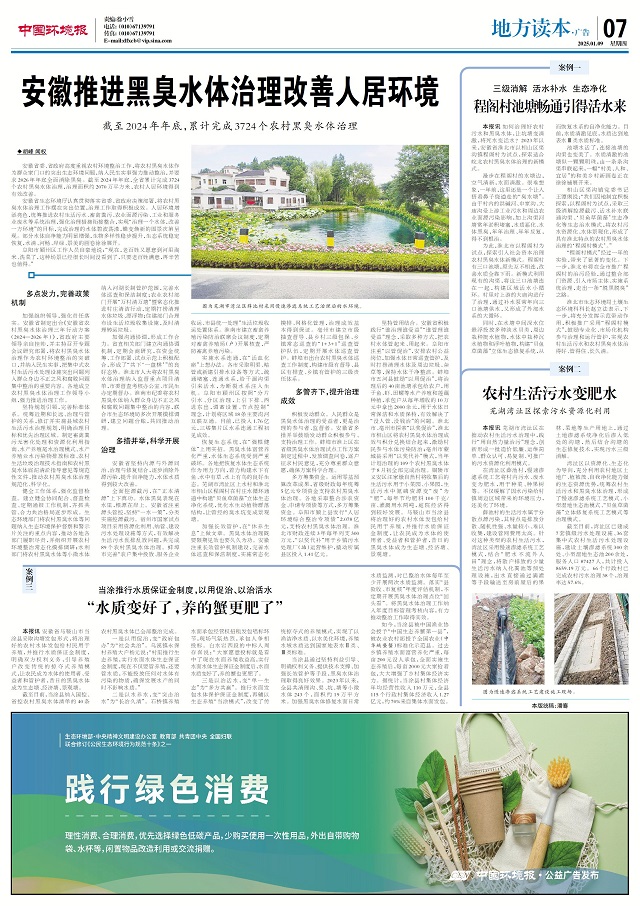 安徽省委、省政府高度重視農(nóng)村環(huán)境整治工作,將農(nóng)村黑臭水體作為群眾家門口的突出生態(tài)環(huán)境問題,納入民生實事強力推動整治,并要求2026年年底全面消除黑臭。截至2024年年底,全省累計完成3724個農(nóng)村黑臭水體治理,治理面積約2070萬平方米,農(nóng)村人居環(huán)境得到有效改善。