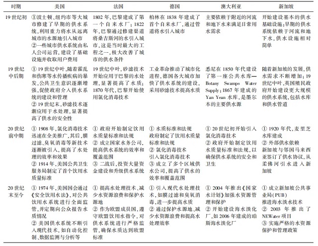 表1主要發(fā)達(dá)國家供水系統(tǒng)的發(fā)展歷史