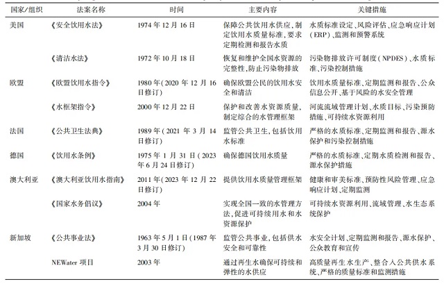 發(fā)達(dá)國家的法案中不僅對水質(zhì)安全保護(hù)作了詳細(xì)規(guī)定,還包含了具體的風(fēng)險(xiǎn)應(yīng)急措施。例如,美國通過《安全飲用水法》和《清潔水法》設(shè)定了最大污染物含量(maximumcontaminantlevels,MCLs)和處理技術(shù)(treatmenttechniques,TTs)的標(biāo)準(zhǔn),同時(shí)要求建立快速反應(yīng)團(tuán)隊(duì)和應(yīng)急響應(yīng)計(jì)劃,以減少突發(fā)污染事件對公眾健康的影響。此外,美國的《未受管制污染物監(jiān)測法案第五版》法案針對鉛、PFAS等特定污染物制定了專項(xiàng)工作方案,進(jìn)一步確保了飲用水質(zhì)量的長期穩(wěn)定。歐盟則通過《飲用水指令》和《水框架指令》,明確要求成員國實(shí)施河流流域管理、污染源控制和水資源保護(hù)措施,減少污染物排放,并提升公眾對飲用水安全的信任度。歐盟還制定了定期水質(zhì)檢測和污染預(yù)警機(jī)制,確保水質(zhì)標(biāo)準(zhǔn)嚴(yán)格執(zhí)行,并通過區(qū)域合作提高跨國水源的管理效率。澳大利亞在《澳大利亞飲用水指南》中包含了水安全計(jì)劃,提出了一系列綜合措施,如水源保護(hù)、污染控制和水質(zhì)監(jiān)控,以減少水污染相關(guān)疾病的發(fā)生。同時(shí),該水安全計(jì)劃參考了國際標(biāo)準(zhǔn),如危害分析和關(guān)鍵控制點(diǎn)(HACCP)和國際質(zhì)量管理體系標(biāo)準(zhǔn)ISO9001,全面規(guī)范了水質(zhì)管理的各個(gè)方面,涵蓋水源保護(hù)、污染源管理、質(zhì)量監(jiān)控和應(yīng)急響應(yīng)等內(nèi)容。新加坡則通過PUB、NEWater項(xiàng)目和綜合水管理體系,采用先進(jìn)的水處理技術(shù)和嚴(yán)格的監(jiān)控手段,確保水質(zhì)的高質(zhì)量和持續(xù)性。新加坡的水質(zhì)安全體系高度依賴實(shí)時(shí)監(jiān)控、快速反應(yīng)和多元化水源保障,以應(yīng)對潛在的水質(zhì)問題。