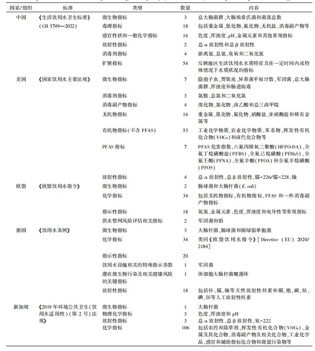 在制定保護(hù)水質(zhì)的法規(guī)和標(biāo)準(zhǔn)時(shí),我國主要參考了美國、歐洲、WHO、俄羅斯和日本的相關(guān)規(guī)范,遵循了與美國類似的原則,水源水質(zhì)管理則遵循《生活飲用水衛(wèi)生標(biāo)準(zhǔn)》(GB5749—2006)和《地表水環(huán)境質(zhì)量標(biāo)準(zhǔn)》(GB3838—2002),并于2022年將《生活飲用水衛(wèi)生標(biāo)準(zhǔn)》(GB5749—2006)更新為《生活飲用水衛(wèi)生標(biāo)準(zhǔn)》(GB5749—2022),新標(biāo)準(zhǔn)對各類污染物的限值做出了嚴(yán)格規(guī)定,涵蓋了微生物、重金屬、化學(xué)物質(zhì)和有機(jī)污染物等多個(gè)方面。這一標(biāo)準(zhǔn)的修訂不僅提高了水質(zhì)管控要求,也響應(yīng)了新污染物的控制,進(jìn)一步完善了我國的飲用水質(zhì)量管理體系。