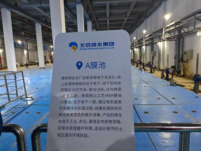 北京市槐房再生水廠是北京市“三年行動方案”建設(shè)項目,水廠規(guī)模60萬立方米/日,同步在廠區(qū)內(nèi)采用熱水解+消化+板框脫水的污泥處理工藝,實現(xiàn)污泥的無害化處置,是全國規(guī)模最大、技術(shù)領(lǐng)先的封閉式地下再生水廠。水廠運用系統(tǒng)化建設(shè)運營理念和北排集團(tuán)自主創(chuàng)新的“北排膜”、“北排紅菌”、精確曝氣及國際先進(jìn)的污泥處置技術(shù)裝備,建設(shè)運營高保障度的排水和再生水設(shè)施。其中,建設(shè)地下或半地下的全封閉處理設(shè)施,既達(dá)到再生水回用標(biāo)準(zhǔn),又實現(xiàn)再生水設(shè)施運行無臭味、低噪音,并提高周邊綠化水平。
