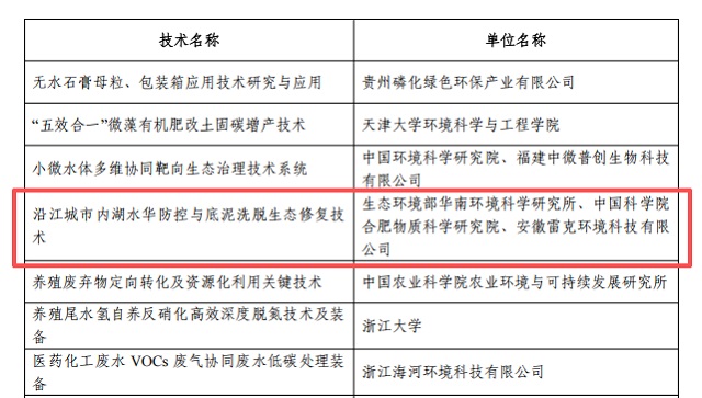 長江生態(tài)環(huán)境保護(hù)修復(fù)遴選技術(shù)清單